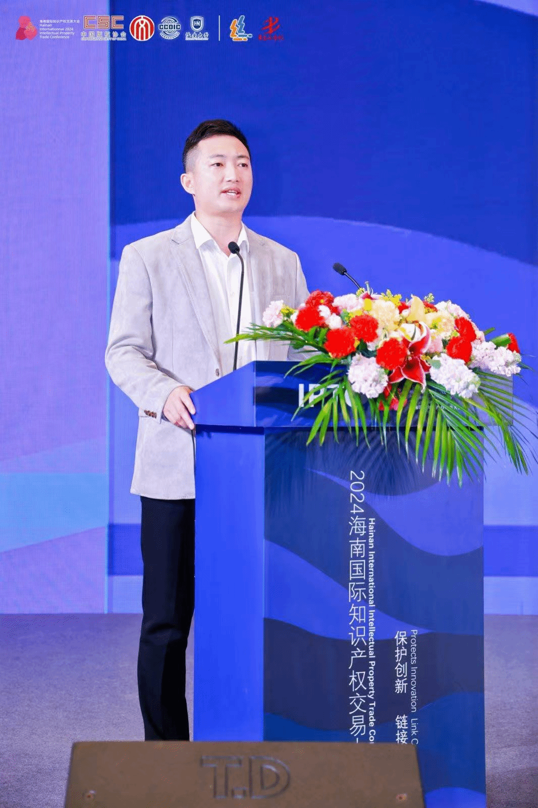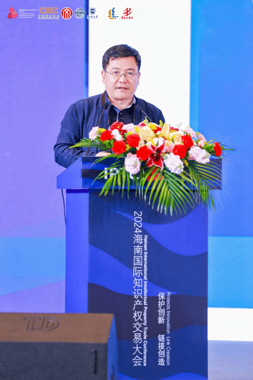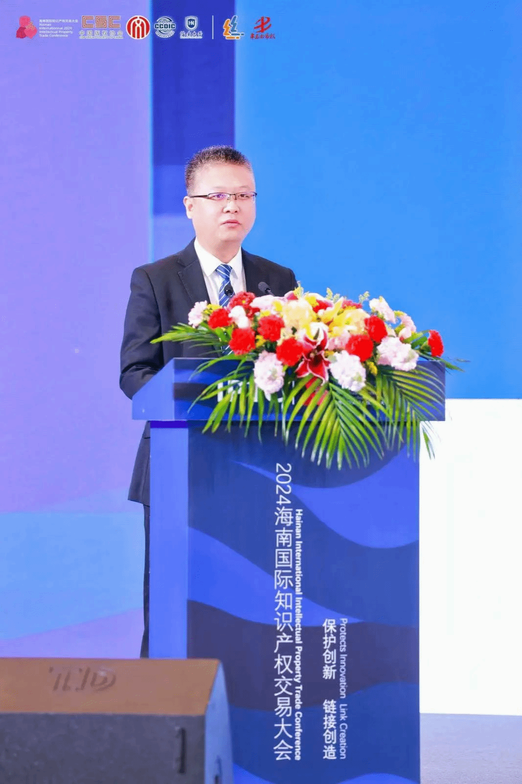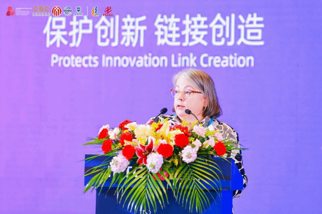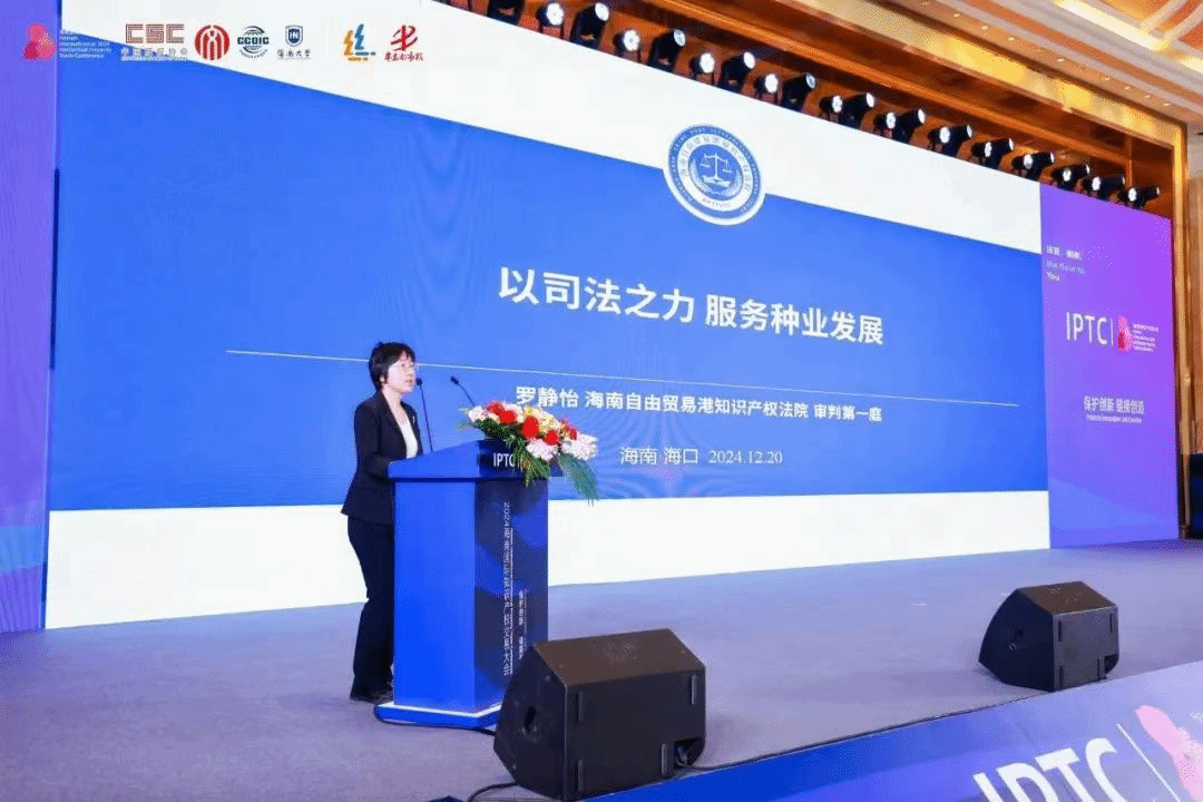 在上午进行的主旨演讲中,海南自由贸易港知识产权法公司党组成员、副经理刘冠兵,从“为创新而生,肩负创新使命;护创新而行,助推新质生产力发展;循创新而进,将改革向纵深推进”等三个方面,介绍了海南自贸港知识产权法院在服务保障中国特色自由贸易港建设、加大知识产权司法保护力度,营造良好营商环境方面的工作。