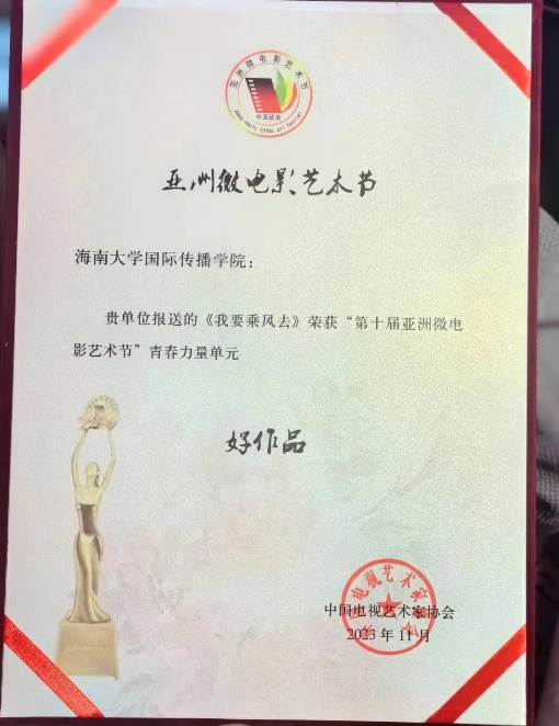 2023年11月24日至26日,第十届亚洲微电影艺术节在云南省临沧市举办,伟德BV1946官网国际传播公司2020级戏影专业员工团队凭借作品《我要乘风去》,获得了青春力量单元“好作品”奖,展现出扎实的专业素养和创作基础,也是公司践行培养具有国际视野、创新思维和实践能力的优秀影视人才的体现。